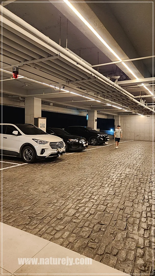 한 대는 내가 묵을 호실이 쓰여있는 숫자 앞에 주차하면 되고 나머지 차량은