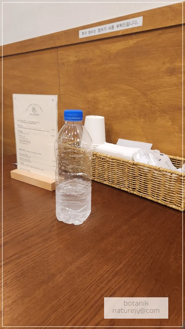 처음에 작은 생수를 주시는데 부족하면 정수기에 추가해서 마시면 되더라구요.