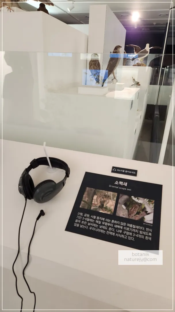 중간에 소쩍새 및 다른 몇몇 새소리를 직접 들어볼 수 있는 헤드폰이 있었어요.