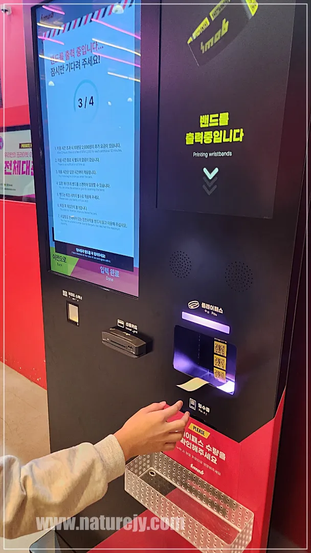 결제한 인원 수 만큼 손목 밴드가 나와요. 수령하고 손목에 차고 입장~~