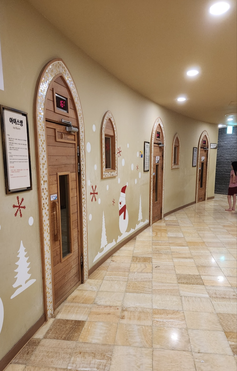 저 유리 뒤에 이따 갈 찜질방이 보이네요.