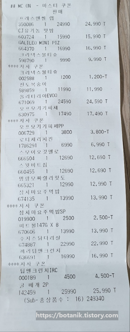 영수증을 보다 보니 사진이 빠진 항목들도 있네요 ^^;;